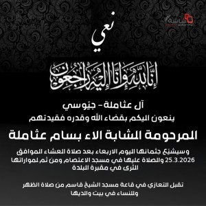 آل عثاملة- جيوسي ينعون ببالغ الحزن والأسى فقيدتهم الشابة آلاء بسام عثاملة